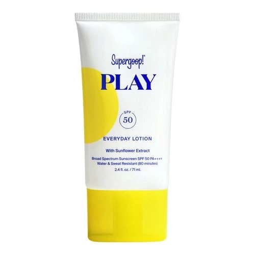 Supergoop! PLAY Everyday Lotion SPF 50 ด้วยส่วนผสมจาก Sunflower, Rosemary และ อุดมด้วยสารต้านอนุมูลอิสระ สูตรเน้นการบำรุงผิว พร้อมการปกปอ้งจากรังสี UVA, UVB, และความเสียหายจาก IRA ยังช่วยปกป้องผิวจากแสงที่ทำให้เกิดสัญยษณแห่งวัย และผิวขาดน้ำ เหมาะสำหรับใช้ในวันที่ทำกิจกรรม ก้วยสูตรกันน้ำ กันเหงื่อ เนื้อบางเบา ซึมไว ให้ความชุ่มชื้น และมองไม่เห็น แถมด้วยกลิ่นหอม