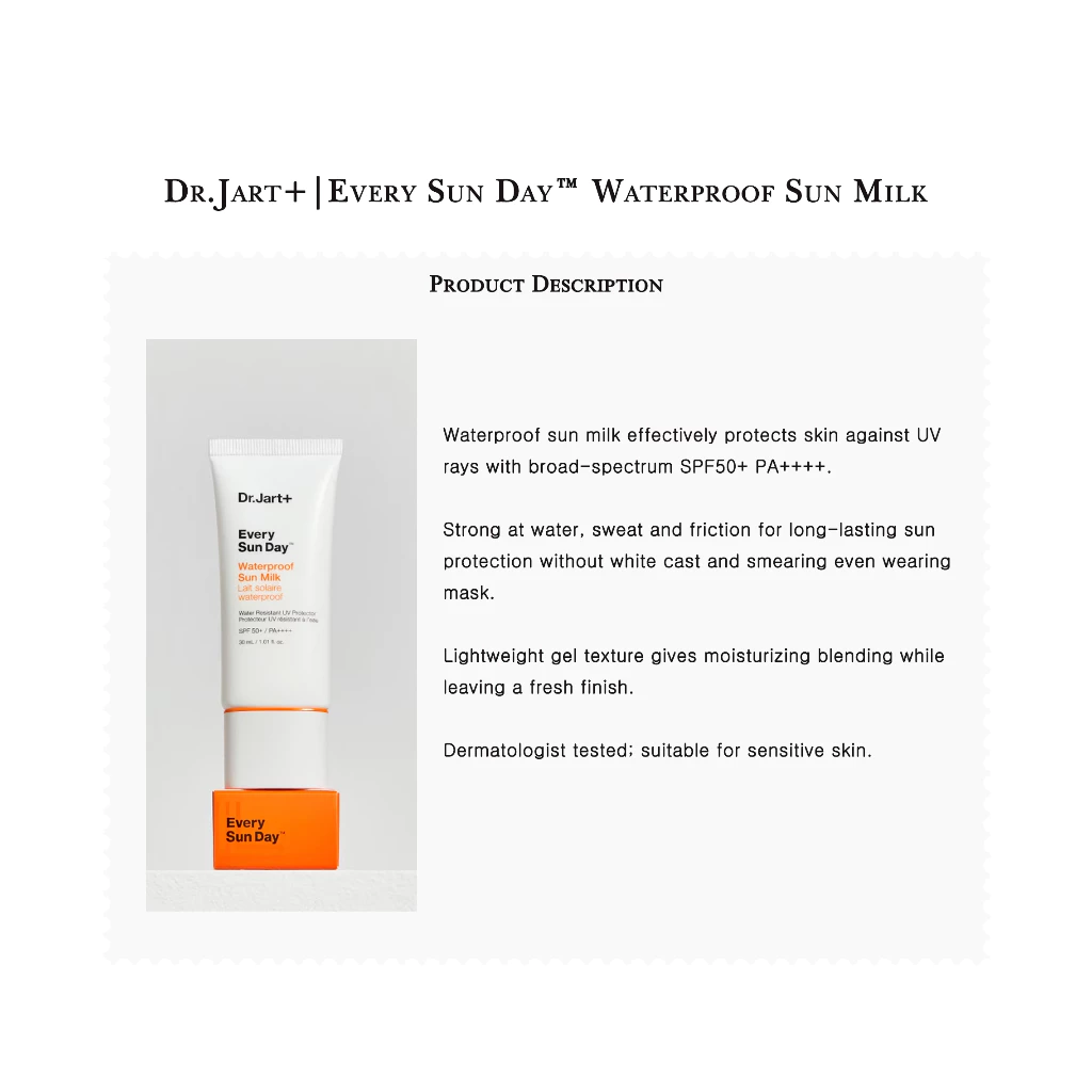 - รายละเอียดสินค้า : ครีมกันแดดกันน้ำ Dr.Jart + Every Sun Day Waterproof SPF 50 + / PA ++++