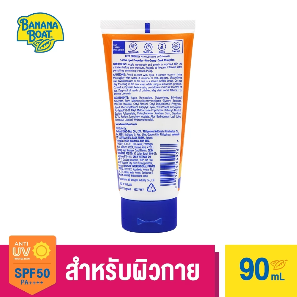 - รายละเอียดสินค้า : Banana Boat Sport SPF50 ผสมด้วยเทคโนโลยี AvoTriplex ที่มี Avobenzone ซึ่งเป็นสารดูดซับรังสี UVA ที่มีประสิทธิภาพช่วยป้องกัน PA +++