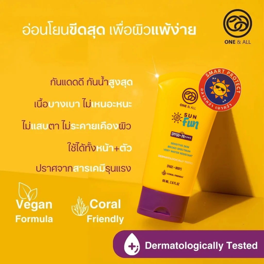 - รายละเอียดสินค้า : One & All Sun Fun SPF50+PA++++ (Face+Body) Sensitive Skin