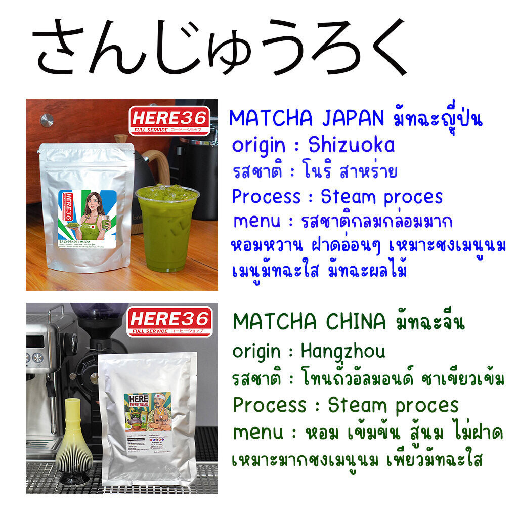 - รายละเอียดสินค้า: มัทฉะแท้ 100% MATCHA แบรนด์ HERE เมือง Shizuoka และ Hangzhou