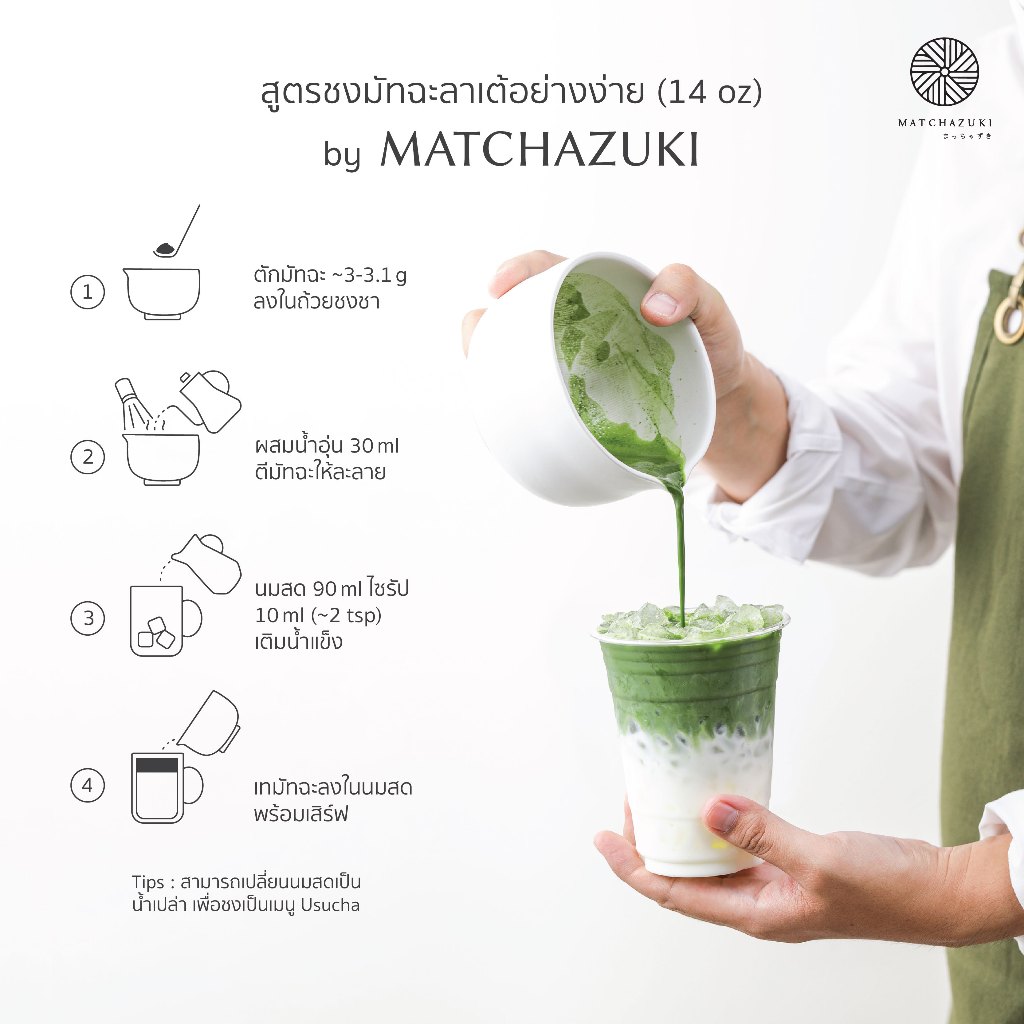 - ส่วนประกอบ: มัทฉะญี่ปุ่นแท้ 100%