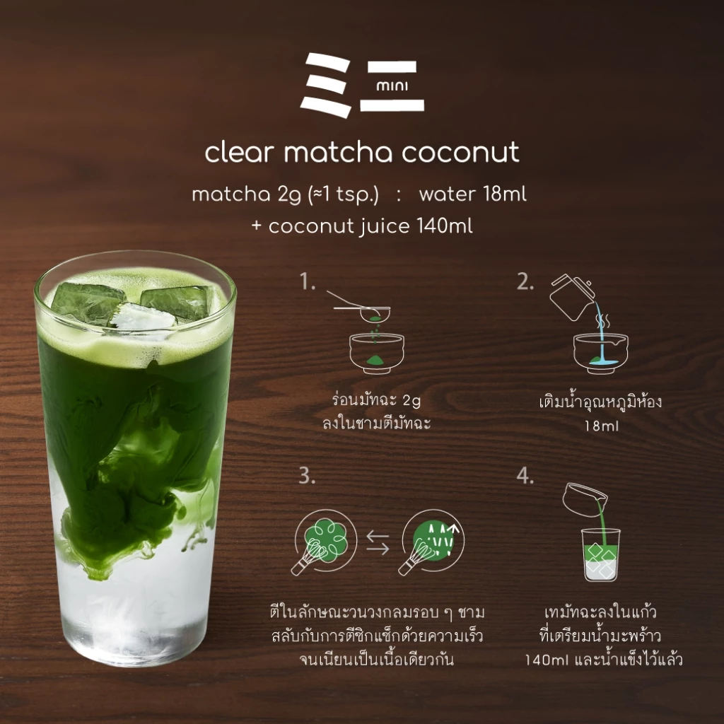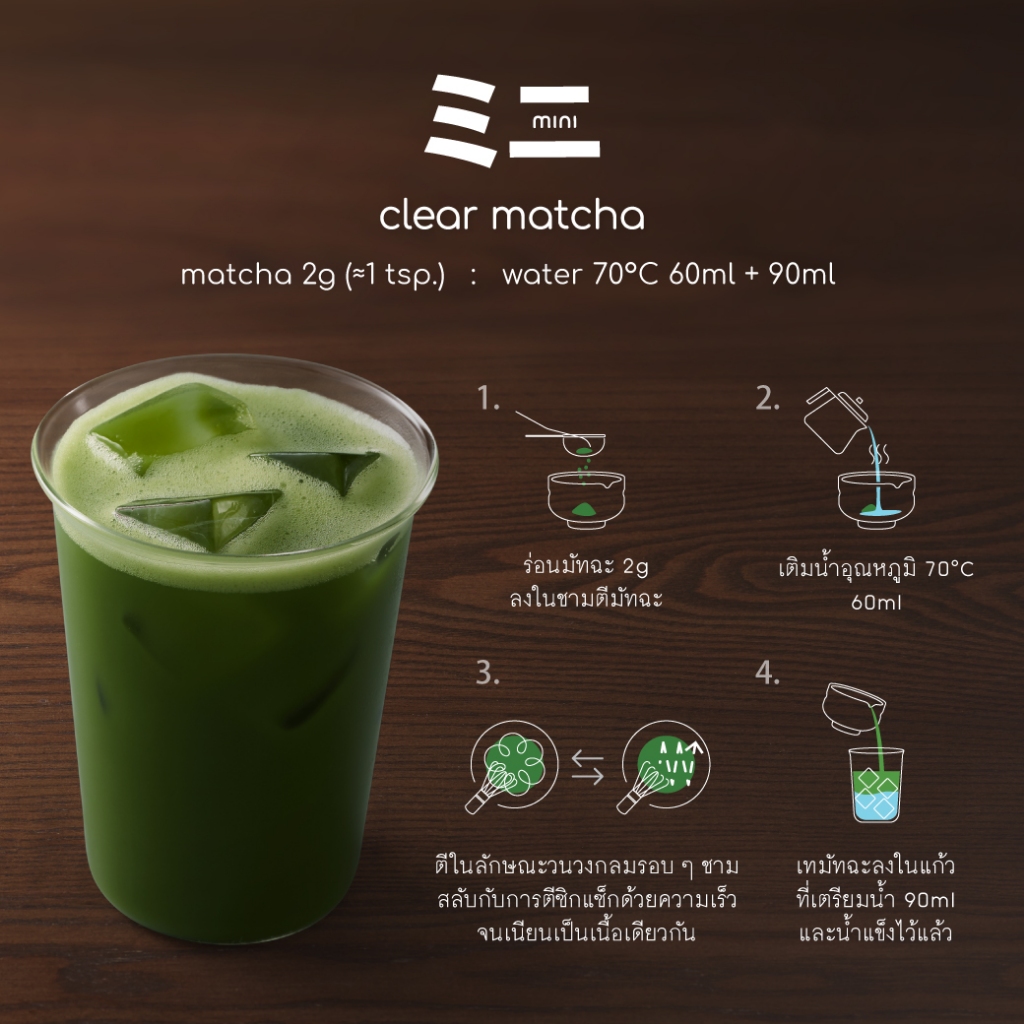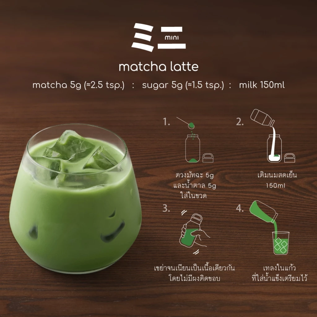 - ส่วนประกอบ: ผงมัทฉะ 100% nutty tone